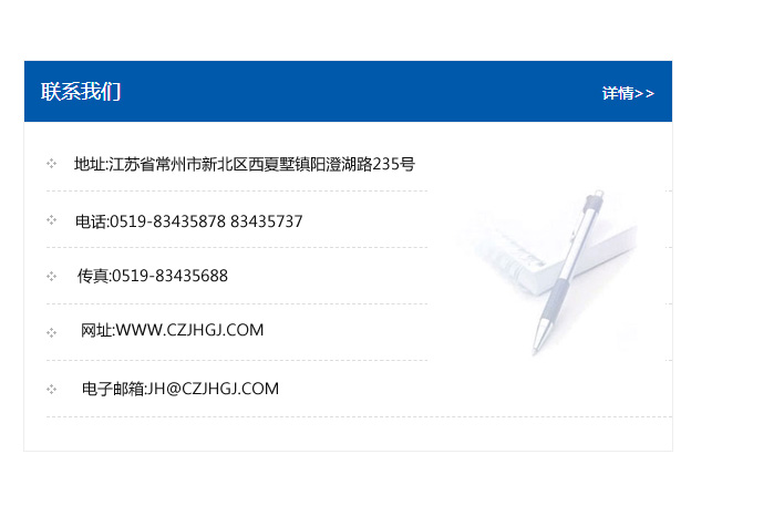 地址:常州市新北區友邦商務大廈1幢16、17層  電話:0519-85101652  傳真:0519-85112595  郵編:213022  網址:www.cz-jiayue_cn.greenappleau.com  郵箱:xiajifengaa@163.com